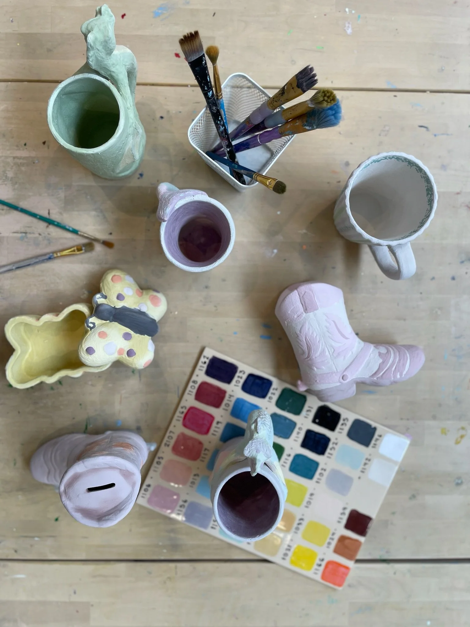 Come by, get creative, and leave the cleanup (and the kiln firing) to us!