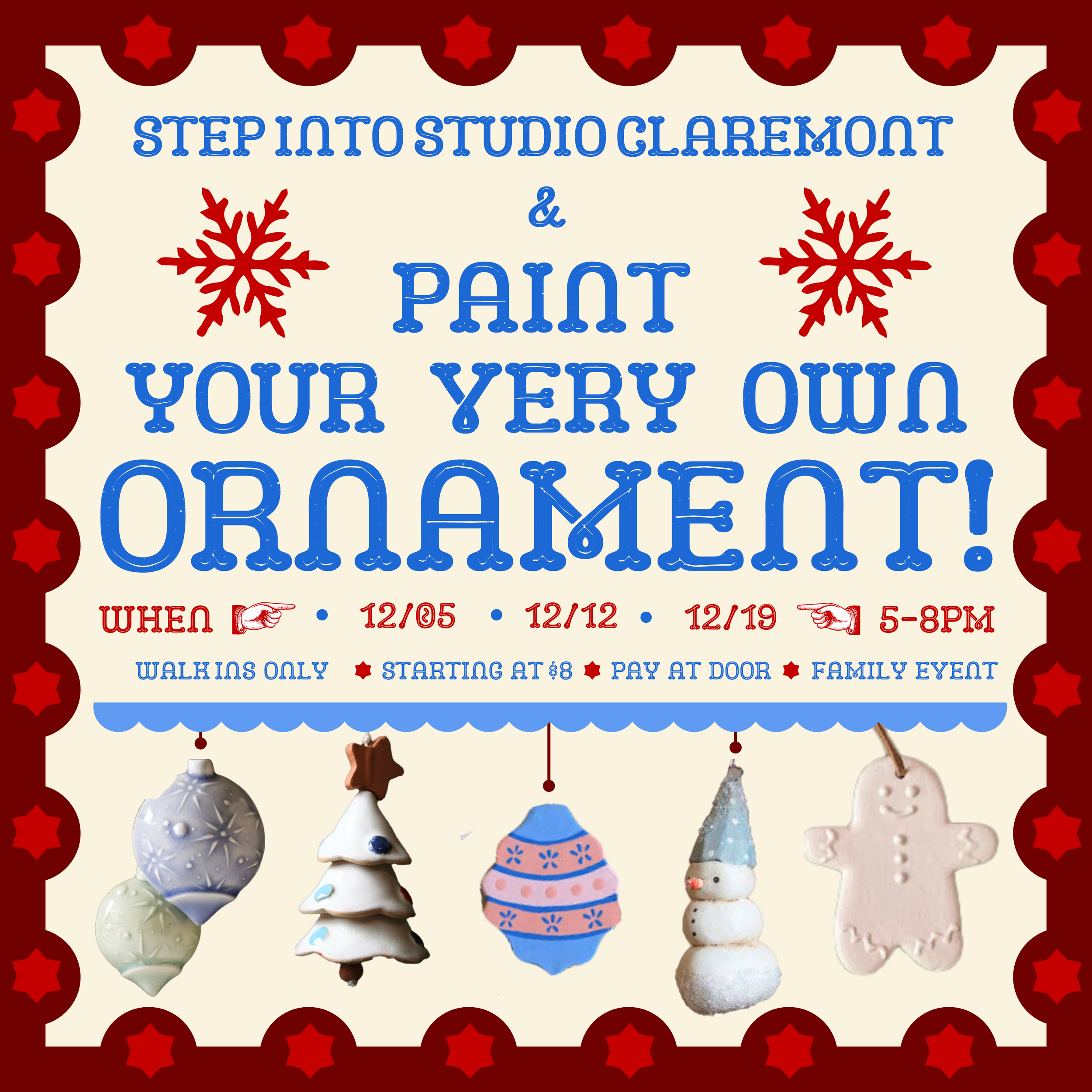 “My fiancé and I had a great time at Studio Claremont’s first-weekend pottery painting! Jackie was so kind, the studio was peaceful, and the pottery selection was amazing. I’d pick it over Color Me Mine any day!